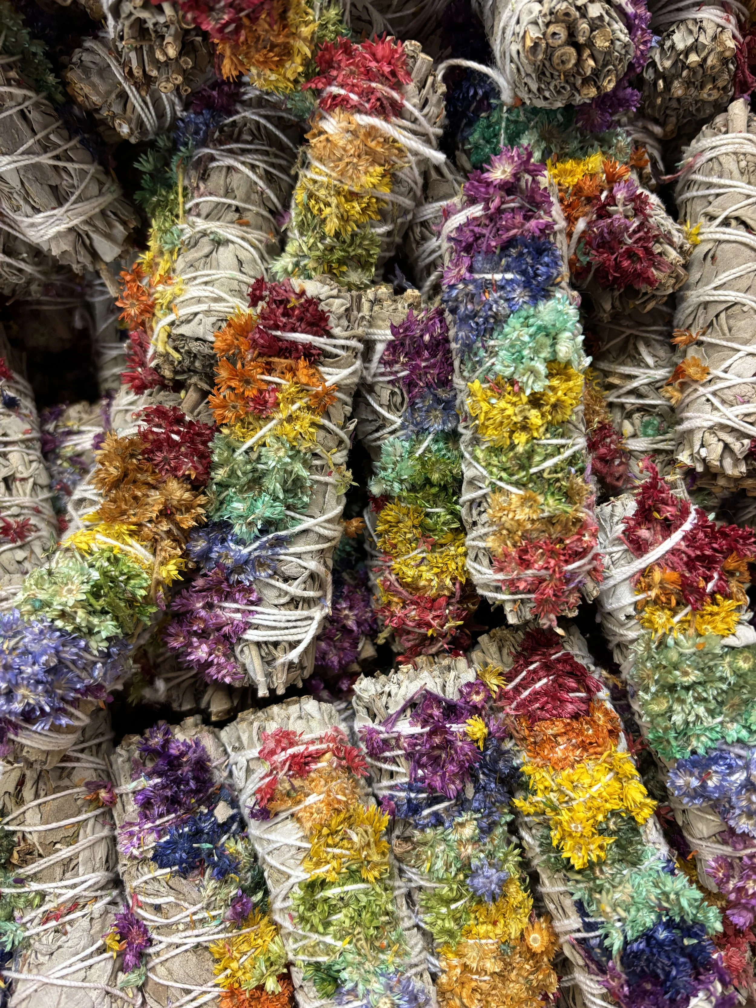 Sun-Dried White Sage With Vibrant Chakra-Aligned Flowers
