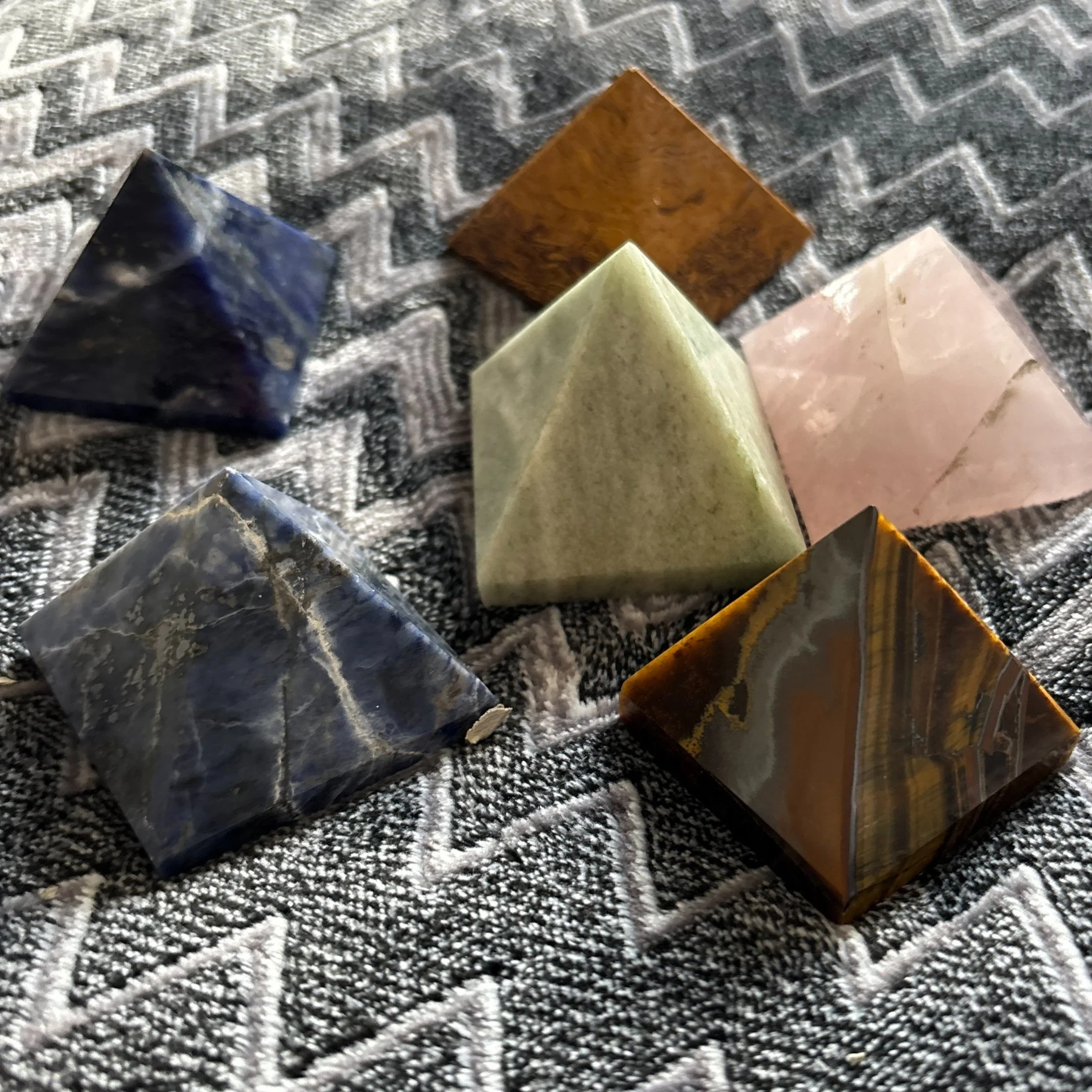 Pyramids are sacred shapes, with a solid base that grounds to the earth while the peak channels and receives energy from the Universe. These pyramids balance contrasting energies, promoting spiritual awakening and connection, balanced with stabilizing forces. A powerful tool for emotional stability and stress relief. Ethically sourced in Mexico.