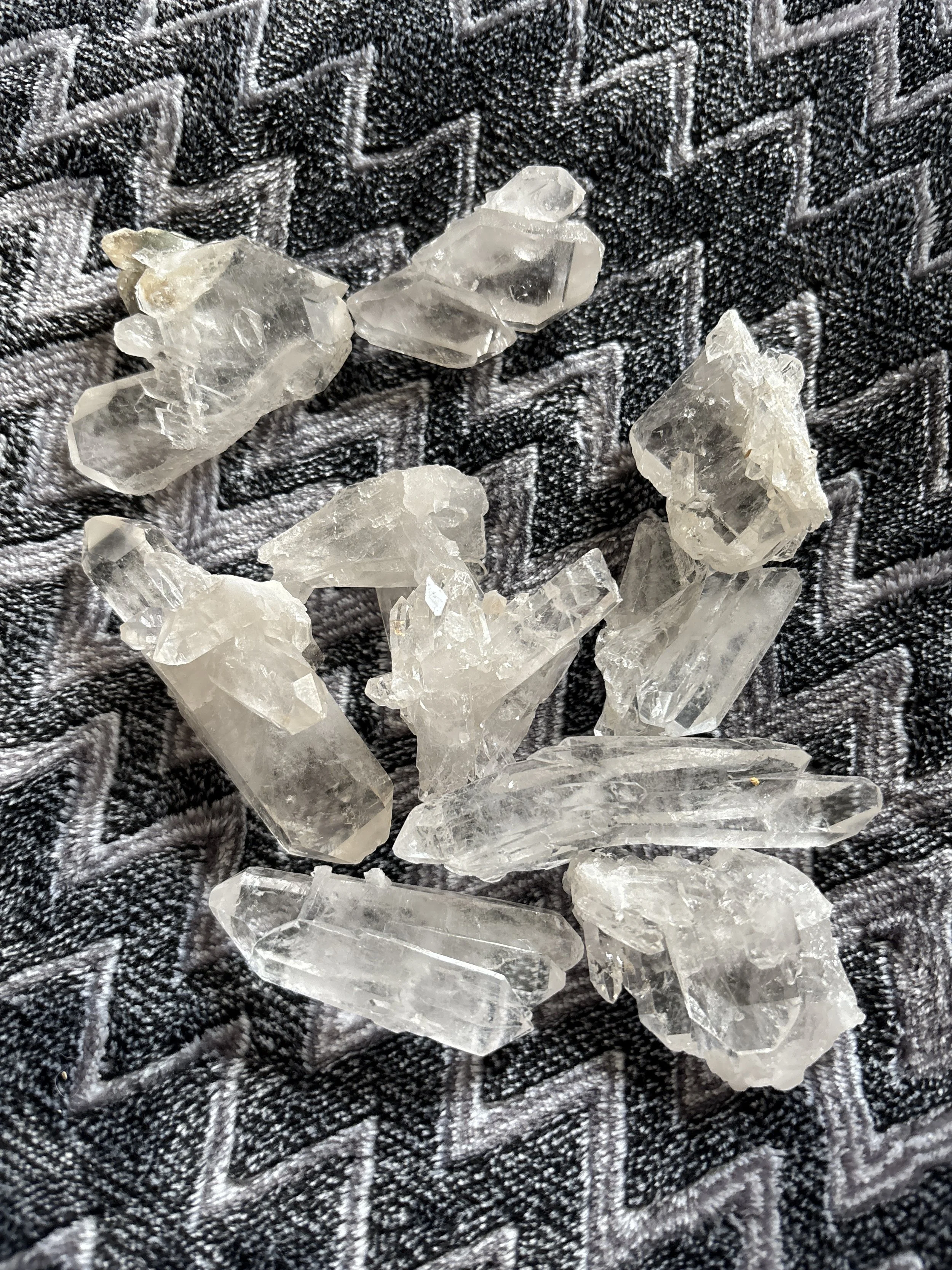 Clear quartz is the master healing crystal of high vibration, with the ability to absorb, amplify and release energy (positive or negative). These crystals have an extremely high clarity and sharpness to their points. They help amplify intention, clarity, healing energy, and the effects of other crystals. Millions of years old, they act as powerful energetic cleansers and stimulate the immune system. Ethically sourced in Brazil.