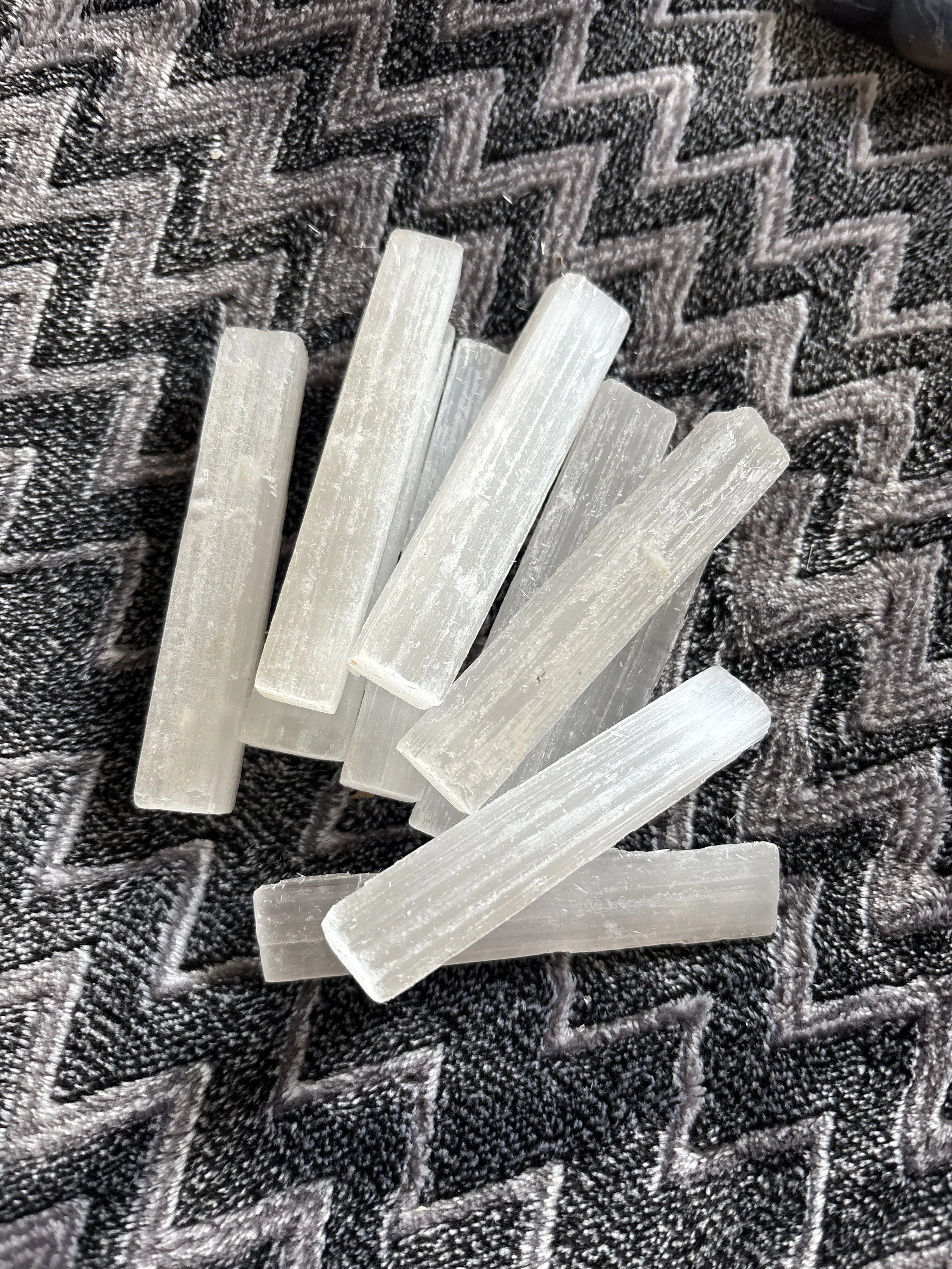 Selenite wands cleanse and recharge your energy and other crystals. Known for purity and serenity, each wand is essential for energy healing and renewal. Place other gemstones beside your selenite wand for cleansing and charging. Ethically sourced in Morocco.