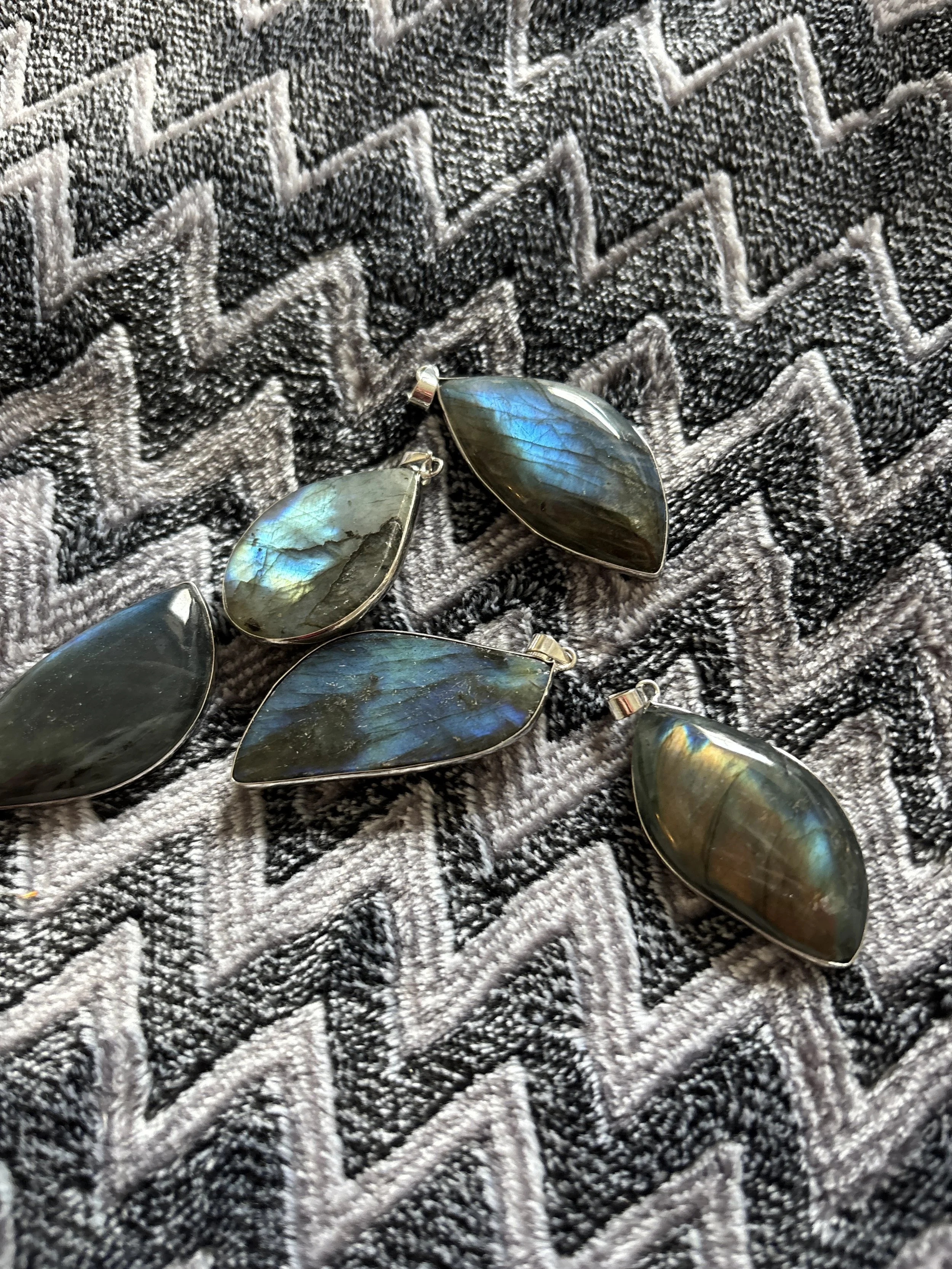 Carrying flashes of iridescent light, this labradorite pendant channels ancient wisdom. Once believed to embody the northern lights, it protects your aura and awakens intuition. With a fabled history of being a deeply mystical stone, Labradorite is a teacher, inviting you to bring energy to every element of your being. Also known as a stone of transformation, Labradorite brings you to a place of truth and illumination. Ethically sourced in Madagascar. Comes with the chain of your choice.