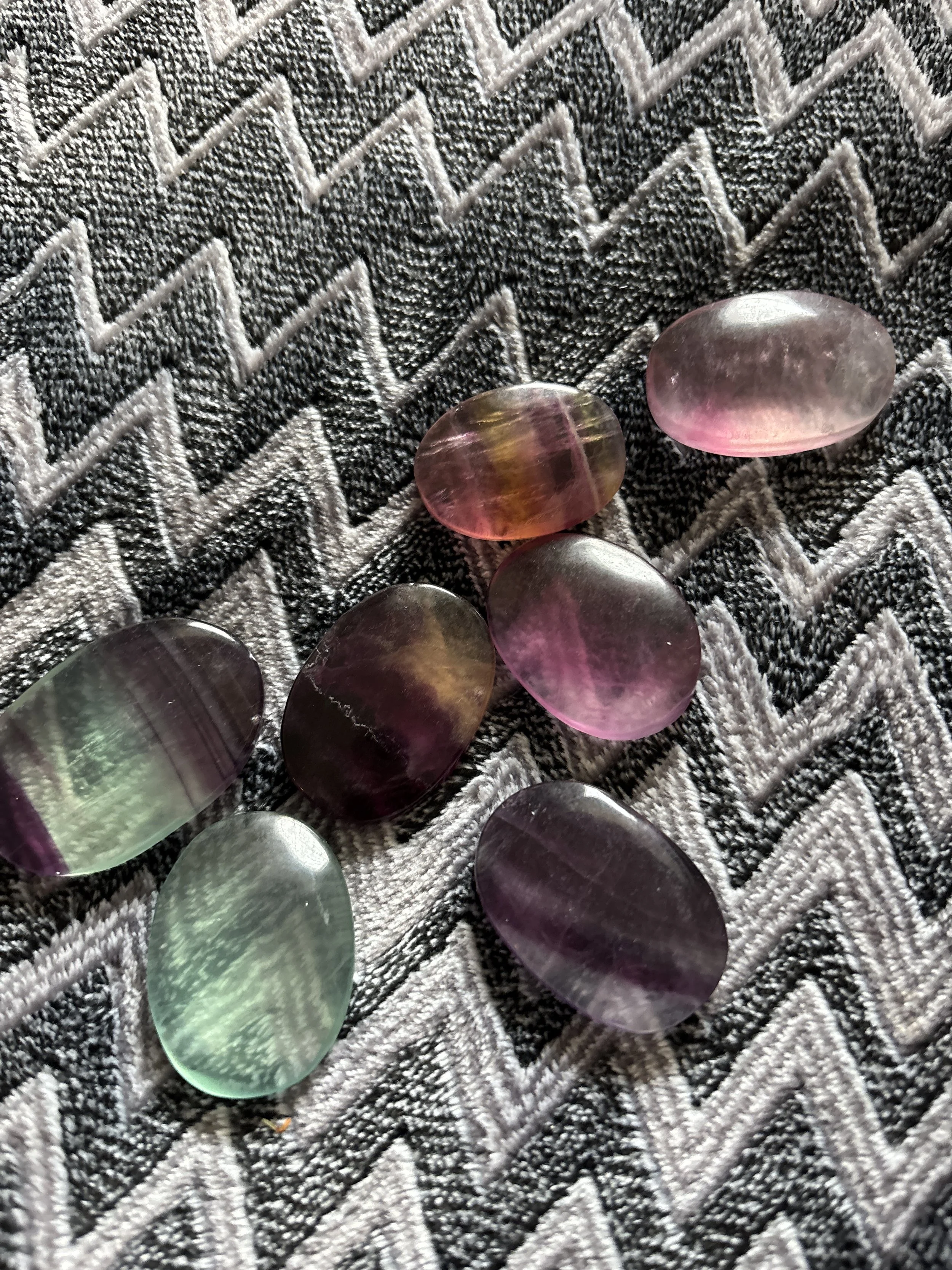 A mesmerizing mix of vibrant hues, this unique crystal is a powerful ally for spiritual awakening, known for its ability to harmonize energy, clear mental fog, and encourage a deep sense of intuition. Worry stones are perfect to hold during meditation or stressful moments, supporting emotional tranquility and mental sharpness. Ethically sourced in India.